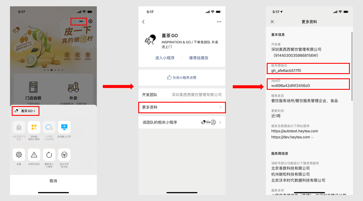 获取方法二:进入您的小程序并点击更多信息进行查看
