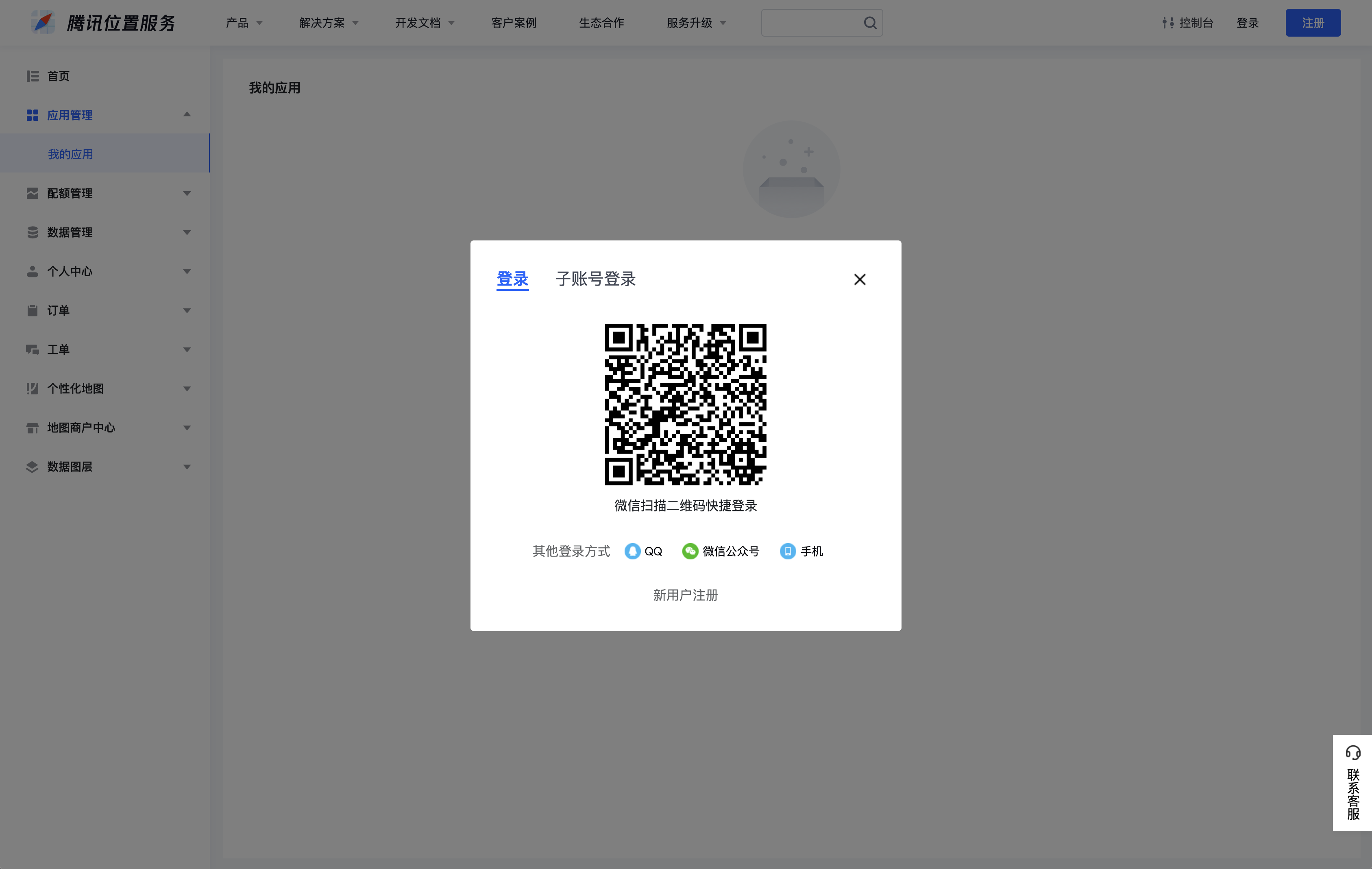 ,未注册过账号可以注册成为腾讯位置服务开发者: