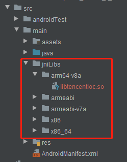 下载定位SDK压缩包后,将其中的jar包和so放到工程libs目录下。so可以依据App目标兼容的CPU架构自行添加。