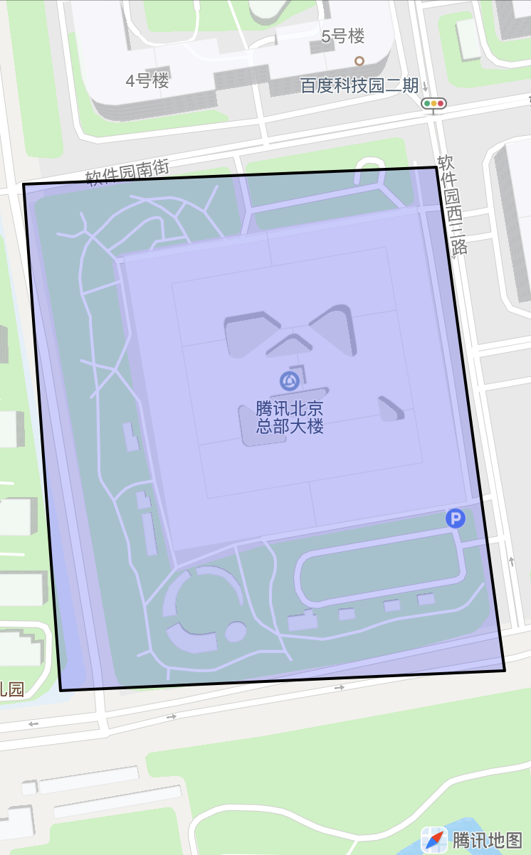 将地图的显示范围固定在一个区域,通过拖动地图也无法离开这个区域,如将区域固定在腾讯北京总部大楼: