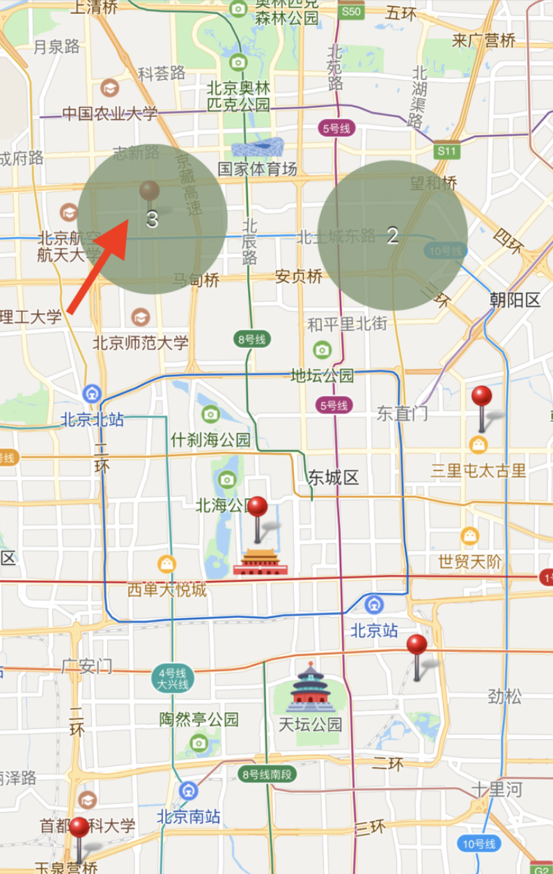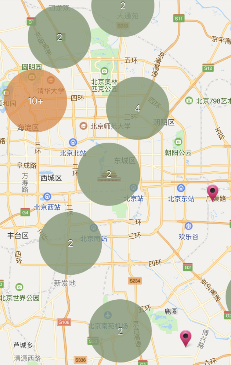 通过 QMUClusterManager 将聚合点数据传入后,用户需要构建聚合点的 View 才能将数据显示在地图上。