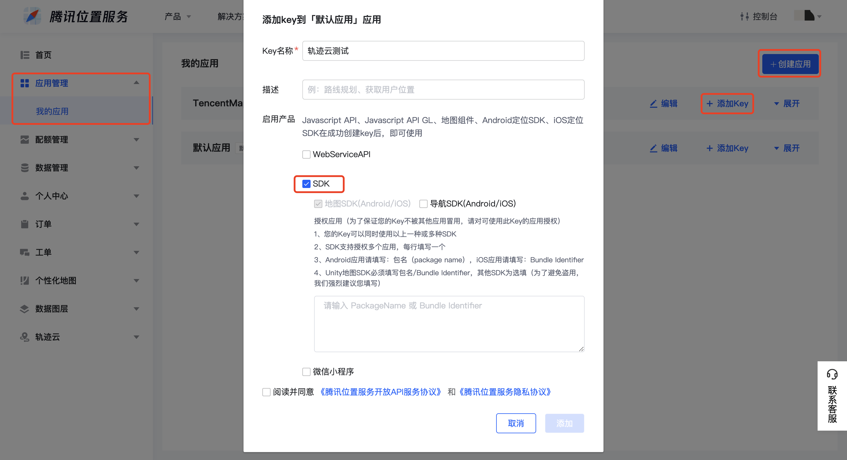 #import <TencentMapTrackKit/TencentMapTrackService.h>并配置开发者Key,此步骤为必须。