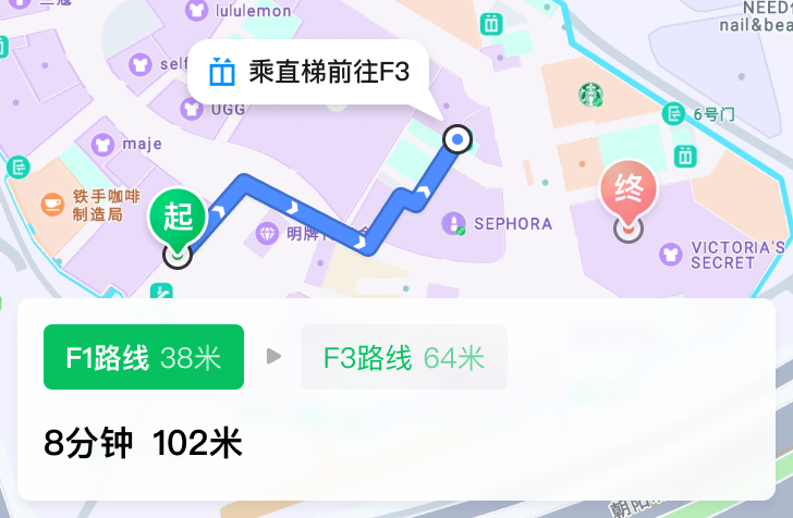 提供室内外步行路线计算能力,支持基于起、终点的室内外步行路径规划。