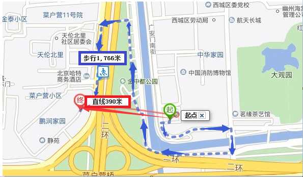 本服务用于单起点到多终点,或多起点到单终点的路线距离(非直线距离)计算: