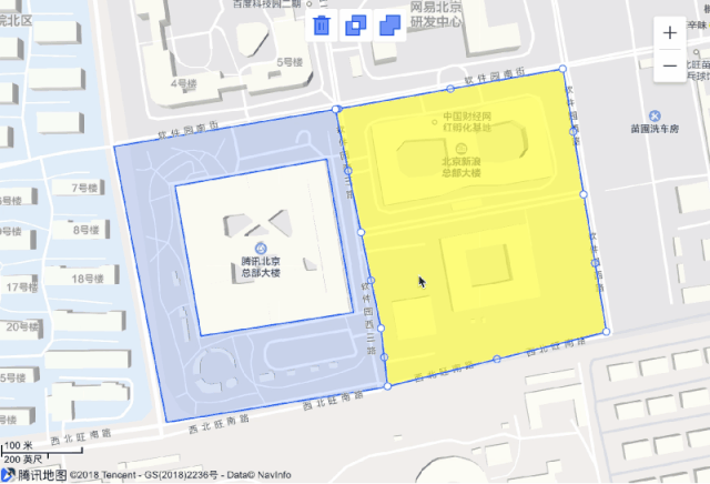 用于电子围栏、园区范围、服务范围的可视化编辑,提供邻近区域贴边吸附功能,操作简单不留缝隙,支持拆分与合并。