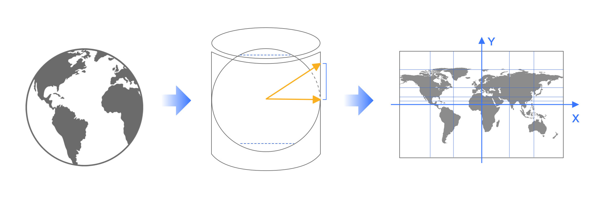 投影方式示意(关于地图投影相关知识,请开发者自行学习了解。):