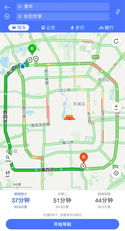 根据指定起点、终点以及出行方式,调起腾讯地图APP的路线规划功能,查询出行路线,并在地图中展示。